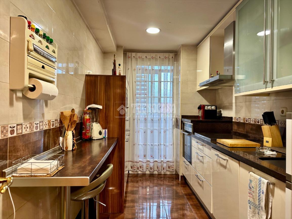 Salón - comedor con salida a una terraza muy agradable, cocina de formato alargado de gran tamaño con un tendedero.