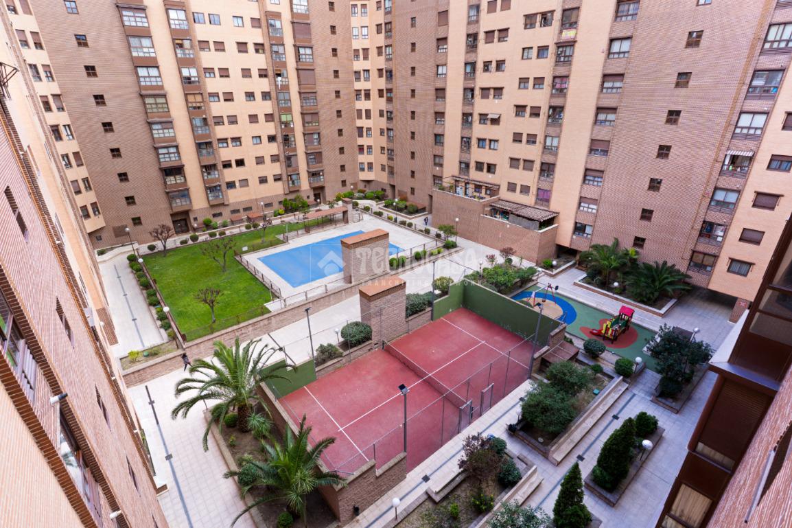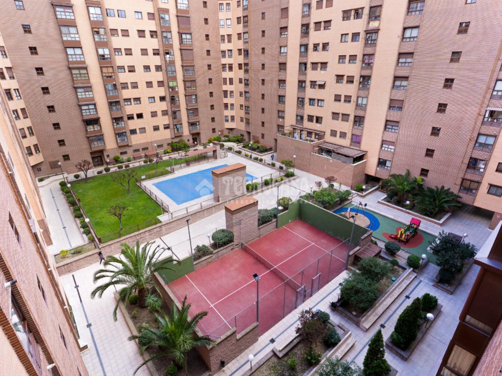 Vende piso exterior con una muy amplia plaza de garaje (pueden aparcar hasta 4 coches) y trastero incluidos en el precio; de 95 m2 construidos (datos según catastro) ubicado en una sexta planta con ascensor. Urbanización cerrada con portero físico, piscina, pista de pádel y gimnasio.